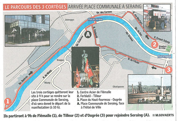Manifestation à Liège, couplée à un arrêt de travail de 24h en interprofessionnel et actions sur tous les sites européens du groupe ArcelorMittal.